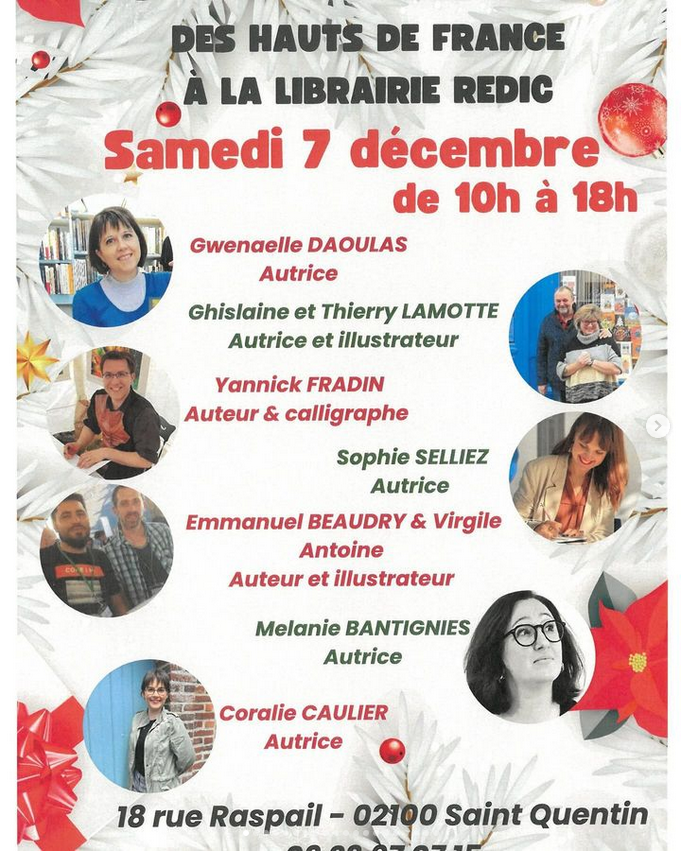 - samedi 7 décembre 2024: librairie Rédic, Saint-Quentin